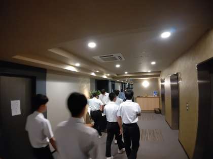 1組、2組、3組は、7時より朝食になりますので、朝食会場に移動しています。