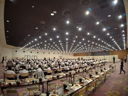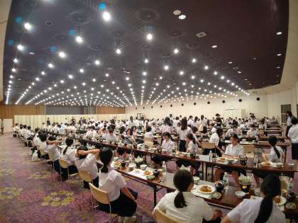 夕食会場に集まりました。