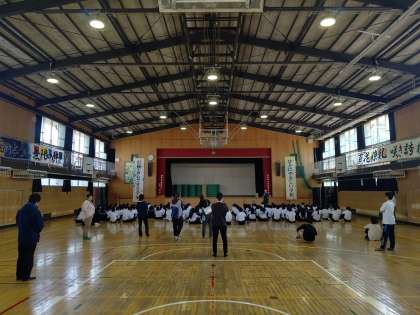 1時間目に体育館で、3年生の修学旅行の事後指導を行いました。