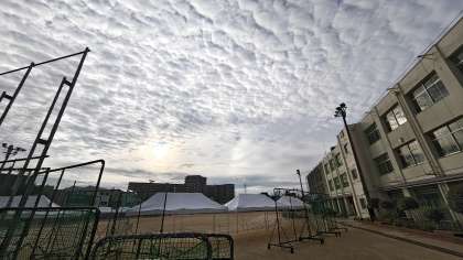 生徒の皆さんは、水筒にお茶か水を多い目に用意し、昼食(レジャーシートも必要です)を持って登校してください。