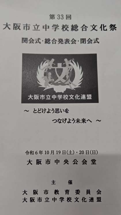 大阪市立中学校総合文化祭が大阪市中央公会堂にて開催されます。