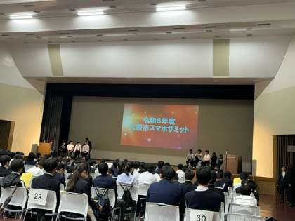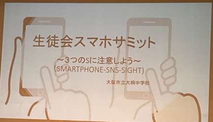 本日、生徒会が大阪市スマホサミットに参加しています。第一教育ブロックの代表校として、スマホの使い方について発表しました。