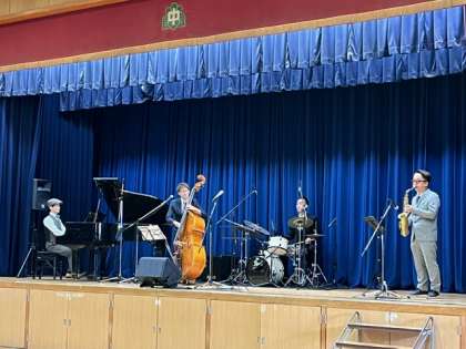 本日は、ジャミングスウィング楽団のみなさんにお越しいただきました。みんなでジャズを楽しんでいます。