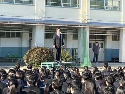 校長先生より「今年は巳年になります。新しい事への挑戦チャレンジしてください。3学期を4月からの新しいステップにつながるように過ごしましょう。」と話がありました。