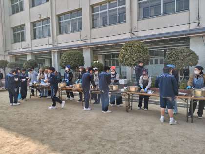 豚汁、お餅を、PTA保護者、PTAOB桐の会の皆様に、お世話になっています。