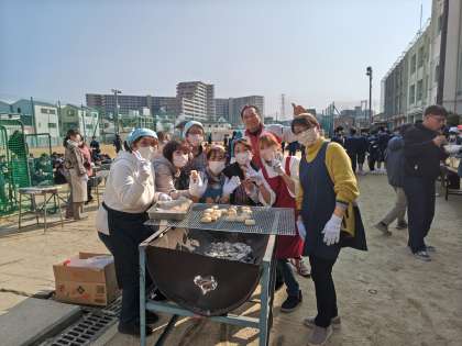 豚汁、お餅をPTA保護者、PTAOB桐の会の皆様に、お世話になっています。