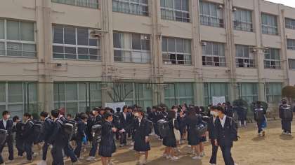 中庭で、2年生、3年生のクラス発表を行いました。