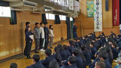 大桐中学校に新しく着任された教職員の紹介と、代表の先生より挨拶がありました。