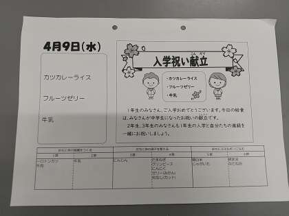 本日は入学祝い献立です。
