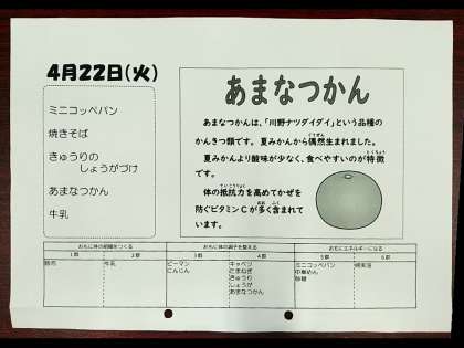 4月22日(金) 本日の献立