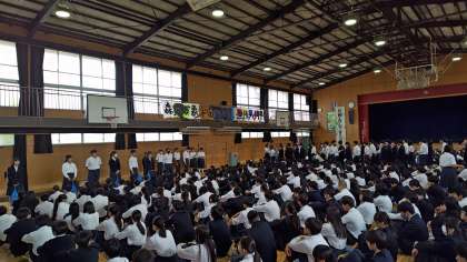 校長先生からは、「4月のひと月を過ごして、皆、しっかりと学校生活を進めてくれています。部活動も3学年そろっての新しい体制となり、春の大会も始まる中、よく頑張っています。」というお話がありました。