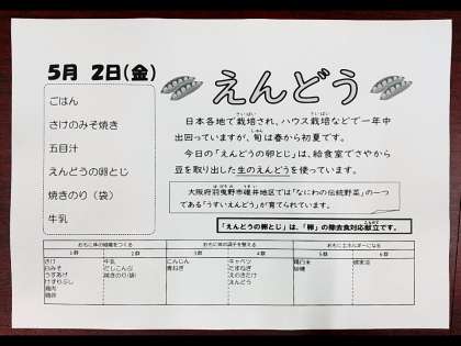 5月2日(金) 本日の献立