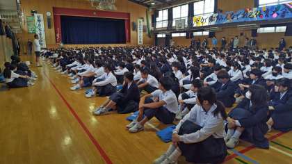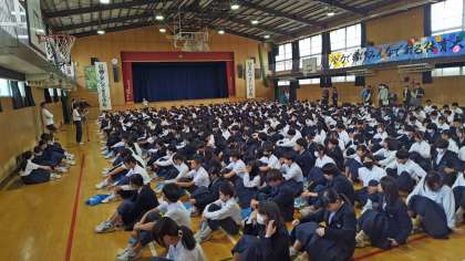 生徒会役員より今月の目標「学校生活の基本となる身だしなみを整えよう。2週間前にはテストにむけて計画を立ててコツコツ勉強しよう。」とお話がありました。