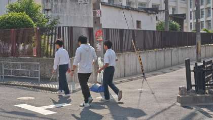 朝の登校時間に、生徒会役員のメンバーが、学校周りの清掃活動を行いました。