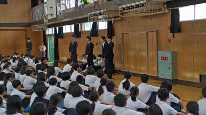 全校集会で、教育実習生の挨拶がありました。本日、3週間の実習の最終日になります。
