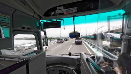 鳥飼大橋を渡っています。