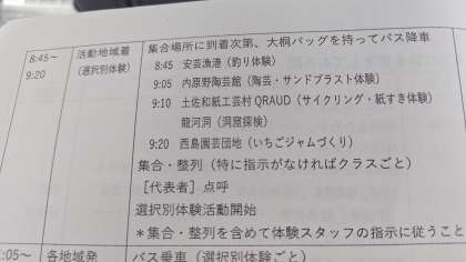 体験ごとに、5つのコースに分かれて、バスで向かっています。