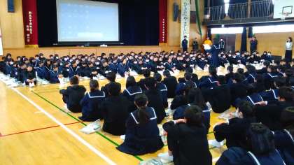 今年度、初めて全校生徒が揃い生徒たちの元気な姿が印象的でした。