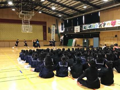 全16部活動の先輩たちが、自分たちの部活動について、アピールしました。その後、見学会が行われました。