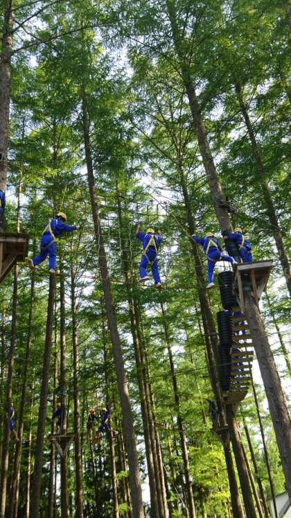 一歩踏み出す勇気が必要なハイエレメントとみんなとの協力が大切なローエレメントを行っています。