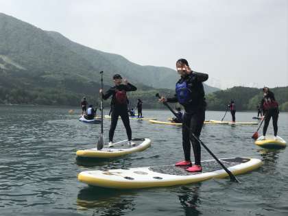 とんぼ玉作りとSUPです。みんな一生懸命頑張りました。