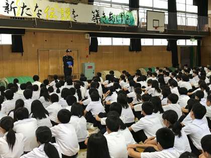 雨天のため、体育館への避難となり、当初予定していた実技訓練は中止になりましたが、皆、速やかに私語なく避難することができました。