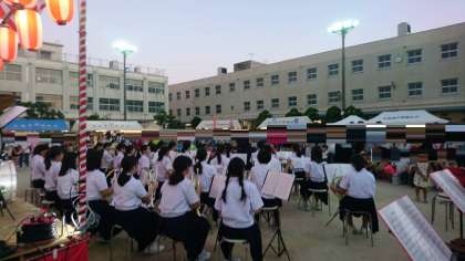 8月4日(土)、5日(日)の2日間、大桐小学校で大桐カーニバルが行われました。初日に、吹奏楽部が「ジュラシックパーク」「学園天国」など5曲を演奏し、参加者を魅了しました。