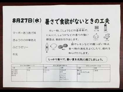 8月27日(水) 本日の献立