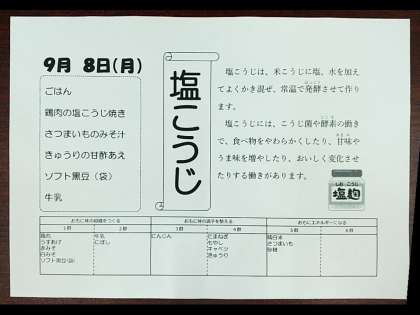 9月8日(月) 本日の献立