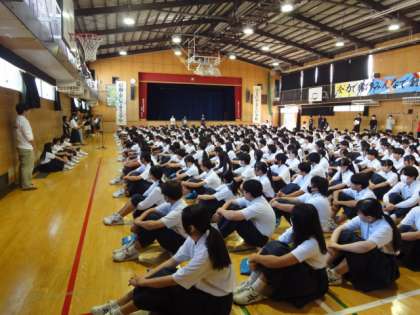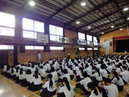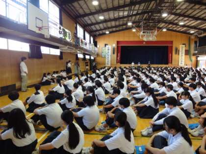 校長先生からは「生徒会役員の皆さん、一年間ありがとうございました。前期委員会の皆さん、半年間ありがとうございました。金曜日の文化発表会に向けて、皆で協力して準備を進めましょう。」と話がありました。