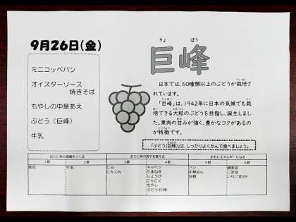 9月26日(金) 本日の献立