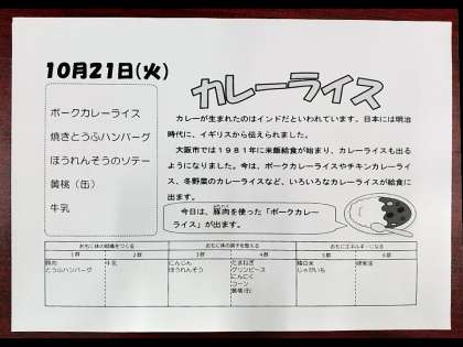 10月21日(火) 本日の献立