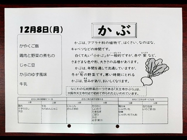 12月8日(月) 本日の献立