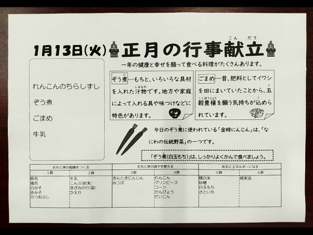 1月13日(火) 本日の献立