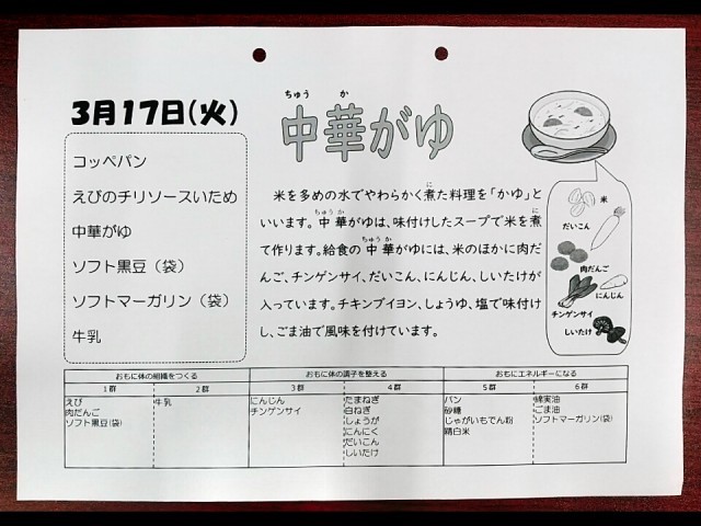 3月17日(火) 本日の献立