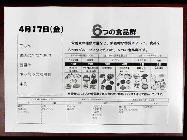 4月17日(金) 本日の献立