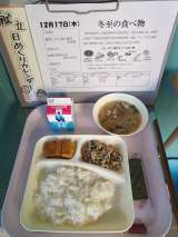 12月17日(木) 本日の給食メニューは ごはん 豚肉と干しずいきのみそ煮 す...