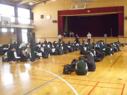 1年生は、明日からの一泊移住の事前指導を行いました。
