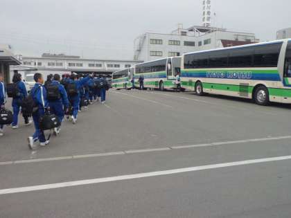 出発式後、バスに乗車しました。