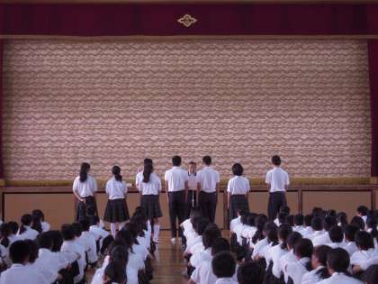 植物は、夏の暑さと光をエネルギーにして秋の実りや春の開花の準備をします、と1学期の終業式で話をしました。8月25日の2学期始業式では、そんな実りの準備を十分にしてくれたと思える自信にあふれた生徒の皆さんの笑顔を見ることができました。そんな中で夏休み中に獲得してくれた表彰状の伝達も行いました。(左の写真)