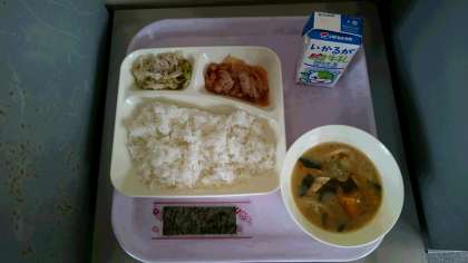 ごはん、牛乳、鶏肉の甘辛焼き、みそ汁、