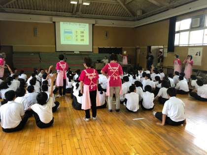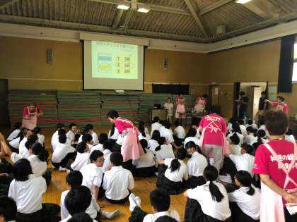 6月21日1年生は、朝食について区役所の方から講義をしていただきました。地域の女性会の方々からはクイズ形式で、教えていただきました。