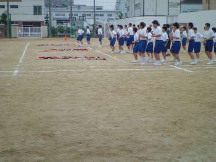 天候が不安定で心配されましたが、雨に降られることもなく、予定通りの練習と2年生学年種目「ムカデリレー」を行うことができました。