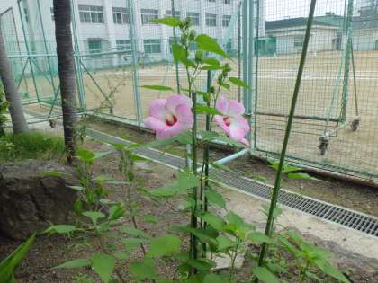 職員室前の花壇に植え替え、美しい花が咲きました。