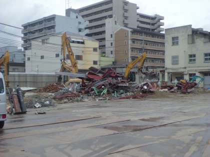 上屋解体され、瓦礫の処理、続いて基礎解体、基礎の杭の引抜き工事になっていきます。
