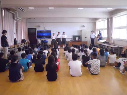 しかし、体育館の建替え工事のため、今年度は生徒会の人が両小学校に行きました。