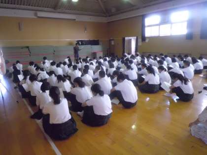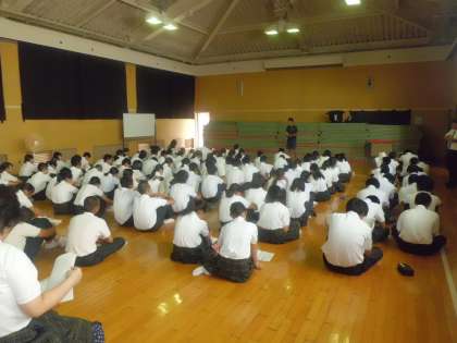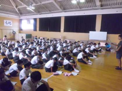明日からの職場体験学習に向けて、武道場で事前指導を行いました。