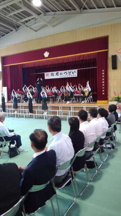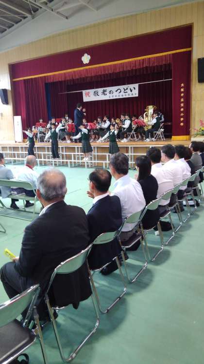 宝栄小学校で敬老のつどいが行われました。本校の吹奏楽部が演奏しました。