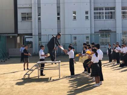 後期の生徒会役員(会長、副会長、執行委員)及び、後期学級委員の認証式を行いました。