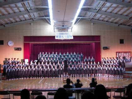 10月17日(金)、1年生は秋の発表会に向けた取り組みとして合唱コンクールを行いました。指揮と伴奏も生徒が行いながら課題曲「青春の1ページ」を、各クラスが舞台で合唱です。保護者約30名も来られていた中でのコンクールでしたので、生徒の皆さんはさぞかし緊張したと思いますが、最後に全員で課題曲を合唱した時には落ち着いた表情でした。その後、1年生らしい良い合唱コンクールでした、との嬉しい講評をもらったので、次の秋の発表会当日の自由曲の部もとても楽しみです。